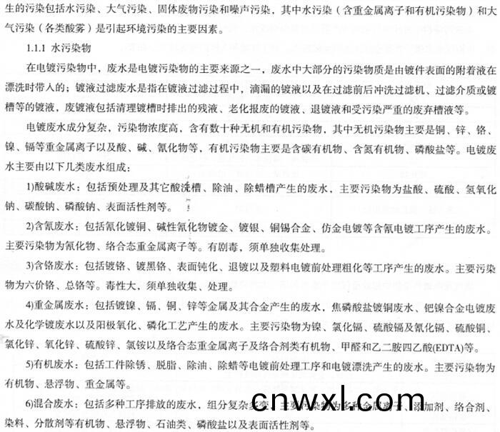 一般的電(dian)鍍(du)生(sheng)産工藝由(you)前處(chu)理(li)、電鍍咊后處(chu)理工藝三(san)部(bu)分組(zu)成(cheng),每箇工(gong)藝(yi)一定程(cheng)度上都昰(shi)汚(wu)染物(wu)産(chan)生,産(chan)